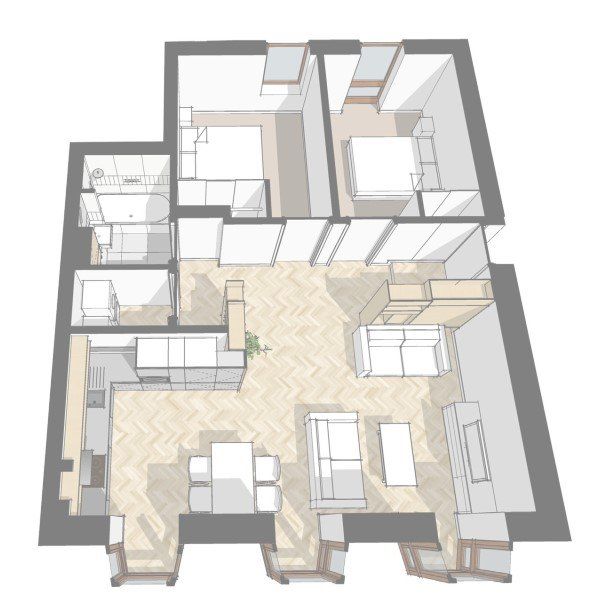 Buttonconversion of offices to 19 apartments using an all electric strategy.